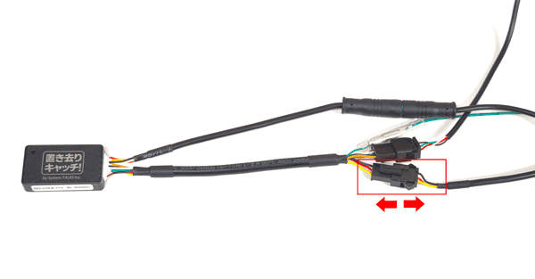 - 本装置の動作を安全に止める方法は、以下の写真の個所のコネクタを外してください。これは制御装置本体との接続部分で、制御装置本体は通常はヒューズボックスの近くに取り付けられています。